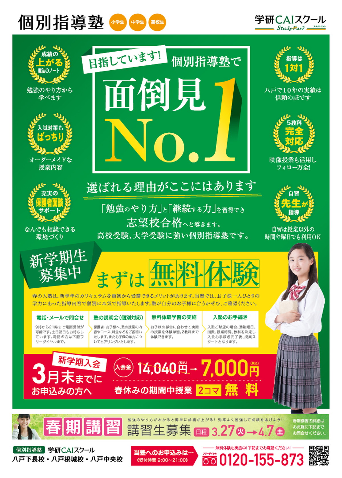 個別指導塾で面倒見NO1を目指している私たちの新学期用のチラシが完成しました。下記リンクより閲覧可能です。まずは個別指導塾の良さを無料の体験学習を通じて確認しませんか?お問い合わせはこちらまで。0120-155-873 チラシの詳細はこちらです。表面 http://juku.educreation.co.jp/image/2018syunki01.pdf 裏面 http://juku.educreation.co.jp/image/2018syunki02.pdf