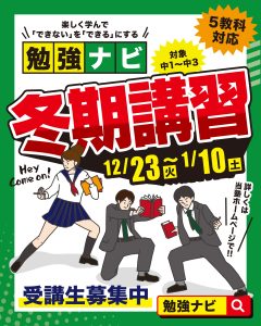 こんにちは、勉強ナビです。 いよいよ2学期も終わりが近づき、「このまま冬休みに入って大丈夫?」と不安を感じる保護者様も多いと思います。実は、冬こそ学力差が大きく広がる季節です。内容が難しくなる2学期後半をしっかり整理でき … 続きを読む 【冬期講習2025-2026】 この冬で“伸びる” 3学期の成績が変わる!
