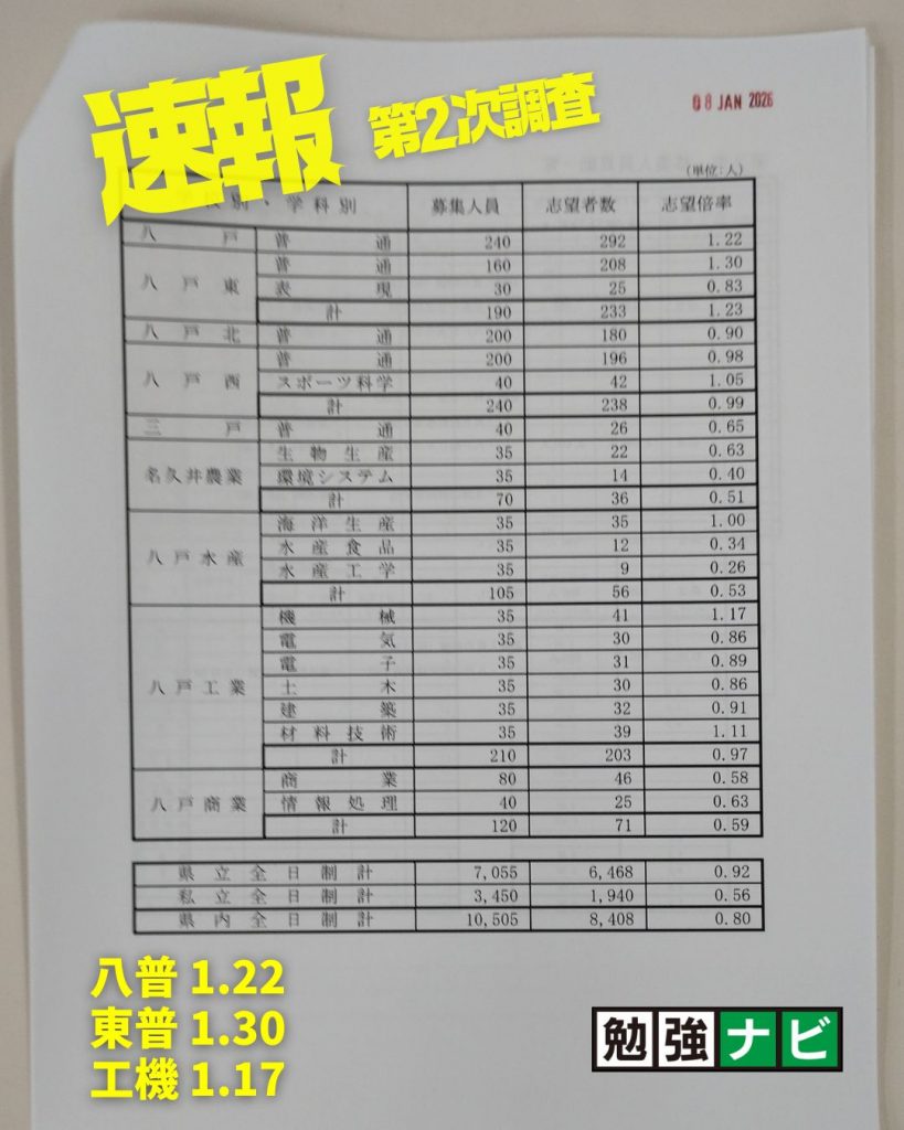 前回1.51倍だった「八戸東・普通」は1.30倍