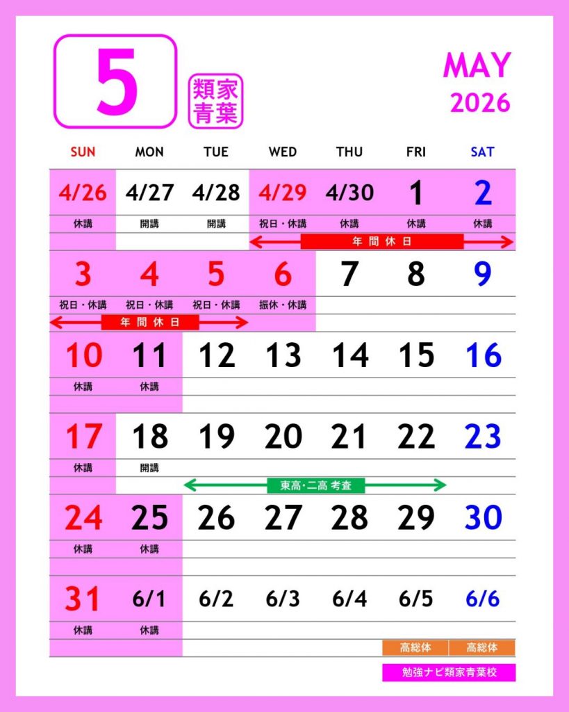 勉強ナビ類家青葉校の開講日・休講日等のお知らせです。随時更新します。