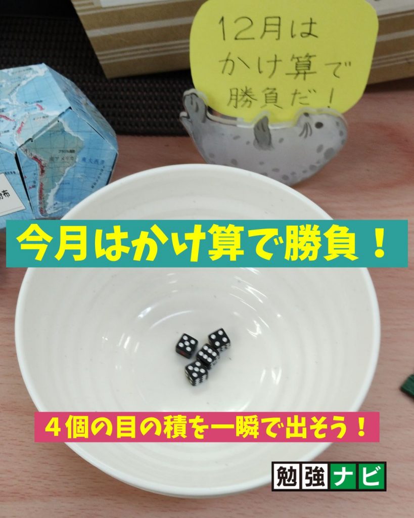 塾に来たときと帰るとき、4個のさいころを振って、