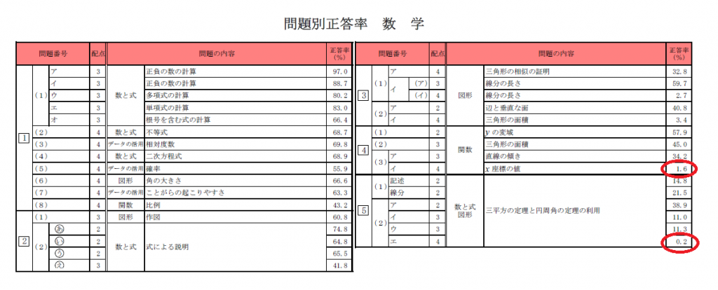 県教育委員会の資料によると、この問題の正答率は 0.2 % だったのです。